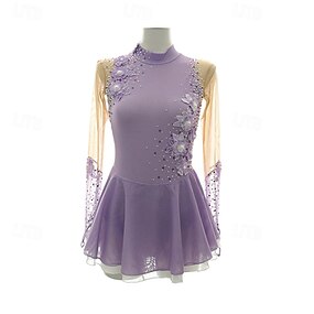 Eiskunstlaufkleid Damen Mädchen Eislaufen Kleid Violett Patchwork Daumenloch Netzstoff Spandex Dehnbar Training Übung Professionell Eiskunstlaufkleidung Thermowarm Kristall / Strass Langarm Eislaufen