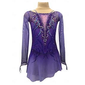 Eiskunstlaufkleid Damen Mädchen Eislaufen Kleider Violett Patchwork Daumenloch Gitter Spandex elastisch Ausbildung Praxis Professionell Eiskunstlaufkleidung Kristalle Langarm Eislaufen Eiskundstlauf