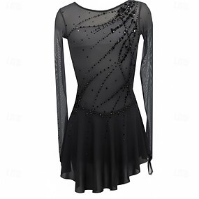 Eiskunstlaufkleid Damen Mädchen Eislaufen Kleid Schwarz Offener Rücken Netzstoff Hohe Elastizität Training Wettbewerb Eiskunstlaufkleidung Klassisch Kristall / Strass Langarm Eislaufen Eiskundstlauf
