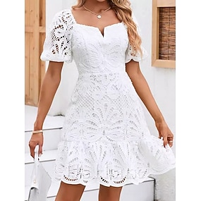 Damen Minikleid A Linie Kleid Sommerkleid Kleid mit Lochstickerei Urlaub Lässig Täglich Normale Passform Grafik Kurzarm V Ausschnitt Weiß Sommer