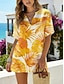 Frauenhemd V-Ausschnitt Knopfleiste Bluse Sommeroberteile Ombre Grafik Baum Tropisch Alltag Hawaiian Kurzarm Hemdkragen Regelmäßige Oberteile Alltag Knöpfe Print Gelb Sommer