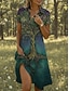 Damen Knielanges Kleid Vintage-Kleid Freizeitkleid Druckkleid Vintage Outdoor Urlaub Ausgehen Normale Passform Baum Kurzarm Hemdkragen Grün Sommer Frühling
