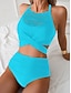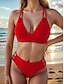 Damen Bikini 2-teilig Badeanzug Unterdraht Frecher Bauchkontrolle Hohe Taille Schmal Rückenfrei Urlaubs Strandbekleidung Uni-Farbe V-Hals Ärmellose Badeanzüge