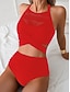 Hoch tailliert Bauchkontrolle Sexy 2 teilig Halter Gestrickt Quastenfransen Spitze Ausschnitt Geschichtet Gerafft Rüsche Kreuz und quer Netz Rückenfrei Racerback Schlank Drucken Patchwork Reißverschluss Knöpfe Tasche Kordelzug Offener Rücken Frontreißverschluss Ein-Schulter Tiefes V Hohe Taille V-Ausschnitt Reißverschluss Strick Gehäkeltmore