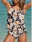 Damen Tankini 2-teiliges Badeanzug frecher rückenfreier Urlaub Strandbekleidung florales grafisch U-Ausschnitt ärmellose Badeanzüge