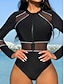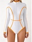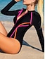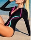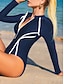 Damen Badeanzug Einteiler Slips Bademode Reißverschluss Patchwork Urlaub Strandbekleidung Farbblock Hoher Ausschnitt Langarm Badeanzüge