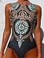Damen Einteiler Badeanzug Slimming Boho Monokini Slips Bauchkontrolle Hohe Taille Slim Rückenfrei Urlaub Strandbekleidung Floral Grafisch Rundhals Ärmellos Badeanzüge