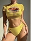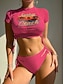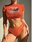 Damen Badeanzug Bikini Dreiteilig Freche Unterhose Bademode Schlank Rückenfrei Urlaub Strandbekleidung Grafik Hoher Ausschnitt Ärmellos Badeanzüge