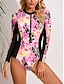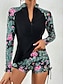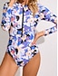 Frauen Einteiler Badeanzug Reißverschluss vorne Palm Monokini Mit Reißverschluss Bauchkontrolle Hohe Taille Schlank Urlaub Strandbekleidung Blumenmuster Hoher Hals Langarm Badeanzüge
