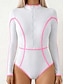 Damen Badeanzug Einteiler Bademode Patchwork Reißverschluss Urlaub Strandbekleidung Einfarbig Hoher Ausschnitt Langarm Badeanzüge