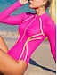 Damen Einteiler Badeanzug Reißverschluss vorne Monokini Bauchkontrolle Hohe Taille Slim Urlaub Strandbekleidung Unifarbener Hoher Ausschnitt Langarm Badeanzüge