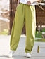 Damen Hose aus Baumwollleinen Chinos Haremshose Urlaub Basic Lässig Volle Länge Mittlere Taillenlinie Einfach Kordelzug Tasche Bequem Unelastisch Täglich Outdoor Straße Hellgelb gelbbraun Beige