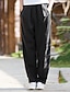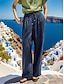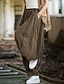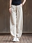 Damen-Leinenhose aus 70 % Leinen, Chinos, Bloomers, Vintage-Streetwear, Basic, lange Länge, mittlere Bundhöhe, schlicht, Tasche, elastischer Bund, bequem, ohne Gummizug, für Alltag, Outdoor, Streetstyle, Herbst, Winter, lockere Passform