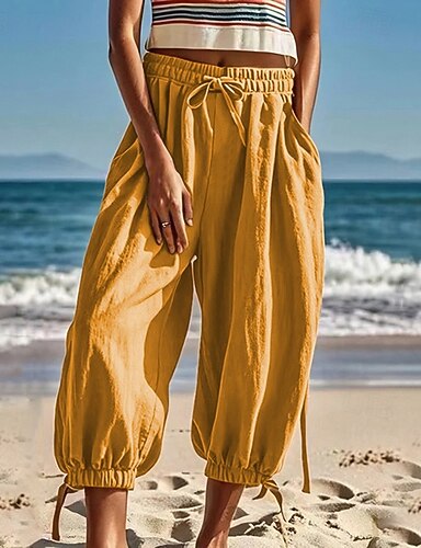 Damen Kunstbaumwollleinen Hose Sommerhose Baggy-Hosen Urlaub Mode Streetwear Volle Länge Hohe Taille Einfach Tasche Elastischer Bund Komfort Weich Atmungsaktiv Dehnbar Sport im Freien Fitness Ferien