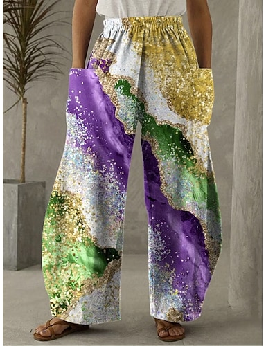 Karneval Damen Weite Beinhosen Leinenähnliche Hosen Urlaub Vintage Ethnischer Stil Voll Länge Hohe Taille Hosen Graphic Farbverlauf Tasche Elastischer Bund Druck Bequem Komfort Atmungsaktiv