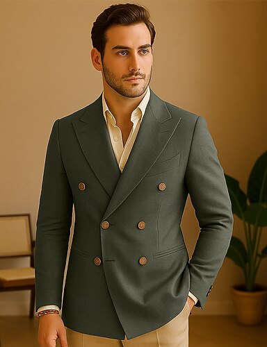 Herren Blazer aus 100 % Leinen Formell Hochzeit Weihnachten Elegant Vintage Sommer Frühling 100% Leinen Einfarbig Tasche Rein Doppelreihig Blazer Schwarz Weiß Orange Armeegrün
