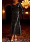 Smokingkleid A-Linie Formell Satin Pailletten Elegant Vintage 3/4 Ärmel Plissee Tee-Länge Peak Revers Doppelreihig