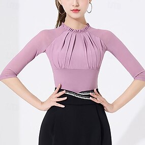 Latein-Tanz oben Farbaufsatz Tüll Damen Leistung Ausbildung Halbe Ärmel Hoch Polyester