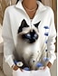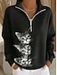 Damen Pullover Sweatshirt Reißverschluss Grafik Tiermotiv Lässig Langarm Halber Reißverschluss Normale Oberteile Lässig Alltagskleidung Ferien Schwarz und Weiß Schwarz Weiß Grau Herbst