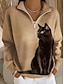 Damen Pullover Sweatshirt Reißverschluss Grafik Tiermotiv Lässig Langarm Halber Reißverschluss Normale Oberteile Lässig Alltagskleidung Ferien Schwarz Weiß Kaki Beige Frühling Herbst