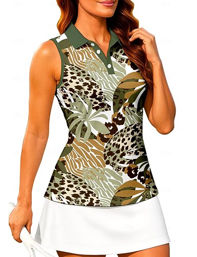Damen Geometrisch Oberteile Sporthemd Golf-Poloshirt Tennis Shirt Ärmellos Reißverschluss Blumen UPF50+ UV-beständig Hohe Elastizität Feuchtigkeitsableitend Atmungsaktiv Tennis Golfspiel Pickleball