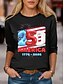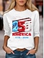 Damen T Shirt Druck Buchstabe USA Lässig Kurzarm Rundhals Normale Oberteile Urlaub Unabhängigkeitstag Weiß Sommer