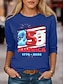 Damen T Shirt Druck USA Lässig Kurzarm V Ausschnitt Normale Oberteile Urlaub Unabhängigkeitstag Blau Rote Marineblau Khaki Sommer