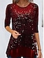 Weihnachten Damen Bluse Einfarbig Elegant Stilvoll Basic Langarm Rundhalsausschnitt Normale Oberteile Täglich Pailletten Patchwork Rote Grün Grau Frühling Herbst Winter
