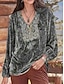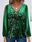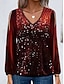 Weihnachten Damen Bluse Einfarbig Täglich Stilvoll Lässig Langarm V Ausschnitt Normale Oberteile Täglich Pailletten Patchwork Wein Grün Grau Frühling Herbst Winter