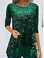 Weihnachten Damen Bluse Einfarbig Stilvoll Lässig Langarm Rundhalsausschnitt Normale Oberteile Täglich Pailletten Patchwork Schwarz Grün Frühling Herbst Winter
