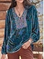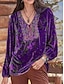 Damen Samt Bluse Floral Vintage Lässig Langarm V-Ausschnitt Regelmäßige Tops Alltag Bestickter Druck Gelb Rot Blau Lila Grau Frühling Herbst Winter