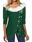 Weihnachten Damen Santa-Hut Shirt Elegante Vintage Off-Shoulder Daily Holiday Feder Schwarz Wein Blau Grün Herbst Winter