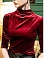 Damen Samt Bluse Einfarbig Elegant Stilvoll Basic Langarm Rollkragen Regelmäßige Tops Alltag Raffung Schwarz Wein Navy Blau Blau Lila Frühling Herbst Winter