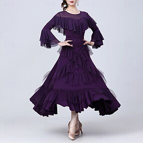 Lateinamerikanischer Tanz Röcke Unifarbe Spleißen Tüll Damen Leistung Training Langarm Hoch Polyester