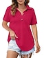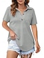 Damen T Shirt T-Shirt Waffelstricktops Knopf vorne Einfach Mode Stilvoll Klassisch Kurzarm Henley Normale Oberteile Täglich Ausgehen Wochenende Blau Sommer Frühling