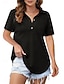 Damen T Shirt T-Shirt Knöpfe Einfach Mode Stilvoll Klassisch Kurzarm V Ausschnitt Normale Oberteile Täglich Ausgehen Wochenende Schwarz Orange Sommer Frühling