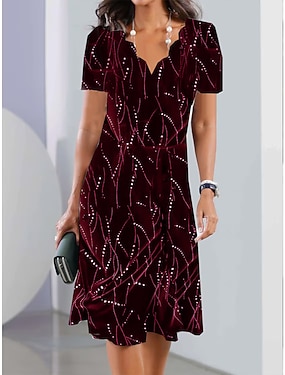 Damen Maxikleid Wickelkleid A Linie Kleid Elegant Formell Hochzeitsgast Cocktailparty Normale Passform Einfach Kurzarm V Ausschnitt Wein Sommer