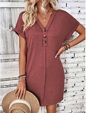 Damen Minikleid Etui-Kleid T-Shirt-Kleid Lässig Täglich Normale Passform Einfach Kurzarm Rundhalsausschnitt Marineblau Schwarz Wein Dunkelgrün Sommer Frühling