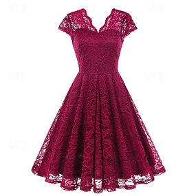 Elegant 1950er Vintage inspiriert Knielang Kleid A-Linie Kleid Teekleid Spitze A-Linie Kostüm Damen Weihnachten Karneval Neujahr Heimkehr Alltagskleidung Junggesellinnenabschiedsparty Erwachsene
