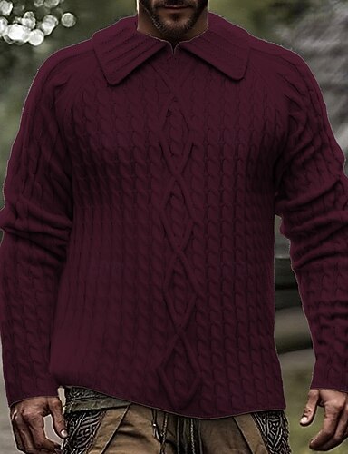 Herren Pullover Zopfmuster Stricken Normale Oberteile Gestrickt Schmale Passform Einfach Umlegekragen Strickware Zeitgenössisch Lässig Alltagskleidung Bekleidung Herbst Winter Wein Schwarz S M L