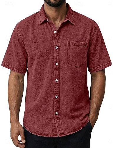 Herren Hemd Freizeithemd Verblasstes Hemd Stückgefärbt Hemd aus 100 % Baumwolle in Säurewaschung Schwarz Hellgrün Wein Dunkelgrün Purpur Kurzarm Einfach Hemdkragen Lässig Täglich Fronttasche
