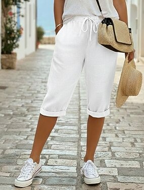 Damen Caprihose Sommershorts Abgeschnittene Hose Caprihose aus Leinen Mode Basic Wadenlang Mittlere Taillenlinie Einfach Kordelzug Tasche Elastischer Bund Leicht Atmungsaktiv Unelastisch Urlaub