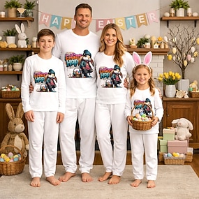 Familie Ostern Schlafanzug Grafik Hase Lässig Druck Weiß Langarm Urlaub Passende Outfits
