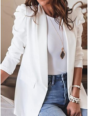 Damen Jacke Alltagskleidung Rüsche Einfarbig Winddicht Vintage Normale Passform Oberbekleidung Langarm Frühling Weiß S
