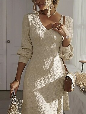 Damen Midikleid schwarzes kleid Partykleid Freizeitkleid Cocktailkleid Elegant Mode Modern Täglich Outdoor Strand Schlank Einfach Langarm V Ausschnitt Blau Schwarz Weiß Frühling Herbst