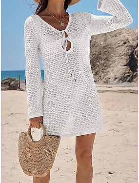 Damen Badeanzug Überwurf Badeanzugkleid Kleid Bademode sexy Ausschnitt Gerafft Strick Urlaub Strandbekleidung Einfach Rundausschnitt Ärmellos Badeanzüge