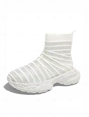 Damen Stiefel Geschenke zum Valentinstag Weiße Schuhe Hochzeitsstiefel Party Outdoor Feste Farbe Einfarbig Innenfutter aus Fleece Stiefeletten Stiefeletten Pelzkragen Kristall Quaste Plattform