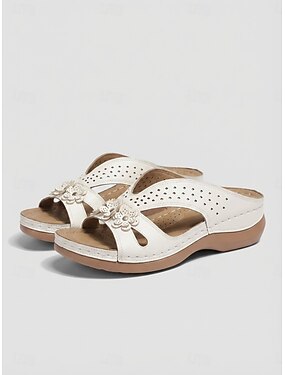 elegante Keilsandalen mit Blumenmuster und Cut-outs für Damen – bequeme Sommerschuhe mit dekorativen Blumen, ideal für den Alltag oder Gartenpartys