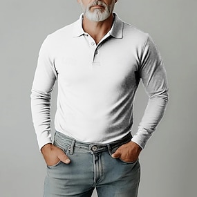 Herren Golfhemd Golf Poloshirts Arbeit Casual Kargen Langarm Basic Modern Glatt Knopf Frühling & Herbst Regular Fit Schwarz Weiß Rosa Rote Khaki Grau Golfhemd