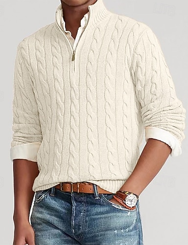 Herren Weihnachtspullover Pullover Zopfmuster Stricken Normale Oberteile Gestrickt Viertel Postleitzahl Einfach Stehkragen Moderne zeitgenössische Lässig Weihnachten Arbeit Bekleidung Frühling Herbst